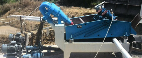 ② 细砂回收系统工作过程:将砂水混合物输送至旋流器,离心分级浓缩的细砂经沉砂嘴提供给振动筛,经振动筛脱水后,细砂与水分离,少量细砂、泥等经返料箱再回到清洗槽,清洗槽液面过高时,经出料口排出.直线振动筛回收物料重量浓度为70%-85%。调节细度模数可通过改变泵转速、改变砂浆浓度、调节溢流水量、更换出砂嘴来实现。从而完成清洗、脱水和分级三种功能。